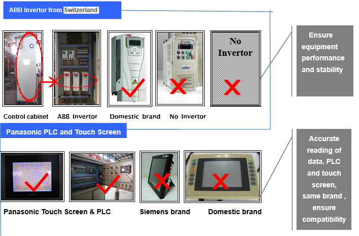 1. কন্ট্রোল সিস্টেম: adpot আমদানি এবিবি invertor এবং প্যানাসনিক পিএলসি এবং টাচ স্ক্রিন ইলেকট্রনিক নিয়ন্ত্রণ উপাদান সরঞ্জাম স্থিতিশীল অপারেশন নিশ্চিত।